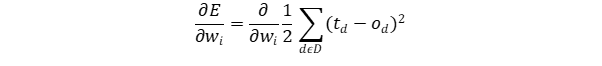 In Gradient Descent, we calculate the steepest descent along the error surface for finding local minima. For this we need to calculate the derivative of E with respect to the weight vector. This vector derivative is called Gradient of E with respect to weight vector w. The training rule can now be represented as :